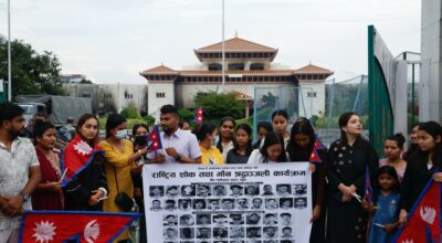 काठमाडौं । जेनजी प्रदर्शनमा ज्यान गुमाएकाहरूको सम्झनामा दीप प्रज्वलन गरेको छ। माइतीघर मण्डलामा मौनधारण गरी दीप प्रज्वलन गरेको हो। जेनजीले