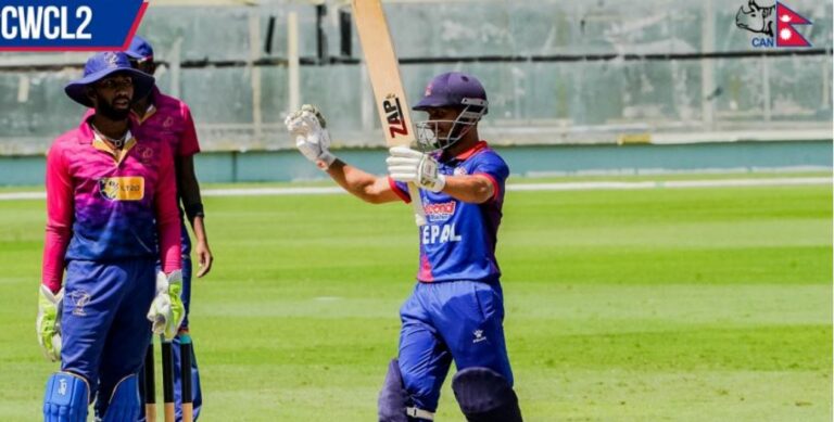 काठमाडौं– यूएईमा जारी आईसीसी विश्वकप लिग टू क्रिकेटको जारी त्रिकोणात्मक शृङ्खलाको आफ्नो अन्तिम खेलमा नेपालले घरेलु टोललाई २३० रनको चुनौती दिएको