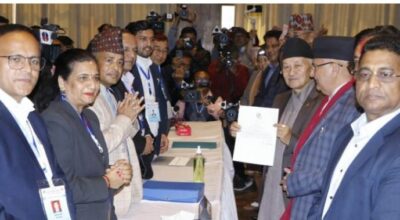 काठमाडौं – नेकपा एमालेका तर्फबाट यही फागुन २५ गते हुने राष्ट्रपति पदको निर्वाचनका लागि उपाध्यक्ष सुवासचन्द्र नेम्वाङले उम्मेदवारी दिनुभएको छ।