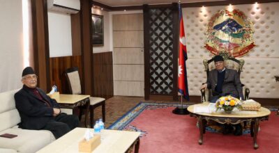 काठमाडौँ-प्रधानमन्त्री पुष्पकमल दाहाल ‘प्रचण्ड’ र नेकपा एमालेका अध्यक्ष केपी शर्मा ओलीबीच भेटवार्ता भएको छ । आज प्रधानमन्त्री निवास बालुवाटारमा दुई