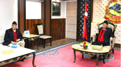 काठमाडौँ – प्रधानमन्त्री पुष्पकमल दाहाल प्रचण्ड र नेकपा एमाले अध्यक्ष केपी शर्मा ओलीबीच भेटवार्ता भएको छ । प्रधानमन्त्रीको सरकारी निवास