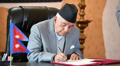 काठमाडौँ । राष्ट्रपति रामचन्द्र पौडेलले प्रधानमन्त्री केपी शर्मा ओलीको राजिनामा स्वीकृत गरेका छन्। राष्ट्रपतिका प्रेस सल्लाहकार किरण पोखरेलले राजीनामा स्वीकृत