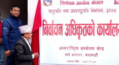 काठमाडौं । राष्ट्रपति तथा उपराष्ट्रपतिको निर्वाचनका लागि नयाँ बानेश्वरस्थित अन्तर्राष्ट्रिय सम्मेलन केन्द्रको परिसरमा आजदेखि निर्वाचन अधिकृतको कार्यालय सञ्चालनमा आएको छ