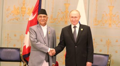 काठमाडौं । प्रधानमन्त्री केपी शर्मा ओली र रुसी महासङ्घका राष्ट्रपति भ्लादिमीर पुटिनबीच औपचारिक भेटवार्ता भएको छ। शाङ्घाई सहयोग संगठन (एससिओ)