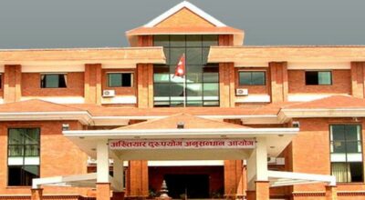 काठमाडौं : अख्तियार दुरुपयोग अनुसन्धान आयोगले यातायात कार्यालय चाबहिलमा छापा मारेको छ। मंगलबार दिउँसो अख्तियारको टोलीले छापा मारेर कार्यालय प्रमुख, त्यहाँका