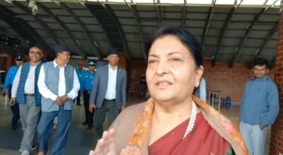 काठमाडौँ : पूर्वराष्ट्रपति विद्यादेवी भण्डारी स्वदेश फर्किनुभएको छ । चीन सरकार र चिनियाँ कम्युनिस्ट पार्टीको विदेश विभागको निमन्त्रणामा चीन जानुभएका