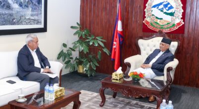 काठमाडौँ : प्रधानमन्त्री केपी शर्मा ओलीसँग नेपालका लागि भारतीय राजदूत नवीन श्रीवास्तवले आज भेट गर्नुभएको छ । प्रधानमन्त्री निवास, बालुुवाटारमा