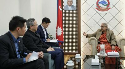काठमाडौँ, २ पुस । प्रधानमन्त्री सुशीला कार्कीसँग आज नेपालका लागि चिनियाँ राजदूत छन सोङले शिष्टाचार भेट गर्नुभएको छ । आफ्नो