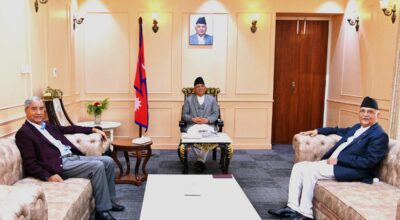 काठमाडौँ । सङ्क्रमणकालीन न्याय (टीआरसी) बारे छलफल गर्न प्रमुख तीन दलका शीर्ष नेता छलफलमा जुटेका छन् । प्रधानमन्त्री तथा मन्त्रिपरिषद्को