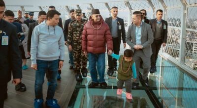 काठमाडौँ : प्रधानमन्त्री केपी शर्मा ओलीले काठमाडौँको कमलादीस्थित स्वाइवाक टावरको अवलोकन गर्नुभएको छ । प्रजातन्त्र दिवसका अवसरमा उक्त टावरमा राष्ट्रिय
