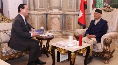 काठमाडौँ : प्रधानमन्त्री केपी शर्मा ओलीसँग नेपालका लागि फ्रान्सका राजदूत भर्जिनिइ कोर्टेभालले आज शिष्टाचार भेट गर्नुभएको छ । प्रधानमन्त्री तथा