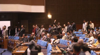 काठमाडौँ : प्रतिनिधिसभाको बैठकलाई विधि र प्रक्रियाअनुसार चलाउनुपर्ने माग राख्दै प्रतिपक्षी दलका सांसदहरुले विरोध जनाउनुभएको छ । प्रतिनिधिसभाको आजको बैठकमा