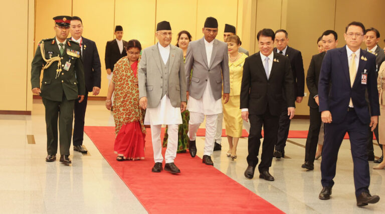 काठमाडौँ । प्रधानमन्त्री केपी शर्मा ओली थाइल्याण्डको औपचारिक भ्रमण र बहुक्षेत्रीय प्राविधिक तथा आर्थिक सहयोगका लागि बङ्गाल खाडीको प्रयास (बिम्स्टेक)को