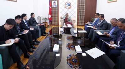 काठमाडौँ, १५ फागुन । प्रधानमन्त्री सुशीला कार्कीसँग नेपालका लागि चीनका राजदूत चाङ माओमिङले आज शिष्टाचार भेट गर्नुभएको छ । त्यस