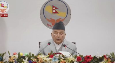 काठमाडौं । राष्ट्रपति रामचन्द्र पौडेलले संघीय संसद्को संयुक्त बैठकमा सम्बोधन गरिरहेका छन् । शुक्रबार (चैत २७) दिउँसो सिंहदबारस्थित बहुउद्देश्यीय हलमा