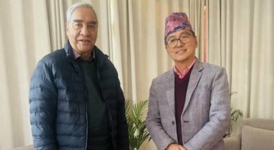 काठमाडौँ । राष्ट्रिय प्रजातन्त्र पार्टीका अध्यक्ष राजेन्द्र लिङ्देन र नेपाली कांग्रेसका सभापति शेरबहादुर देउवाबिच भेटवार्ता भएको छ । बुधबार राप्रपा