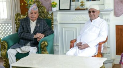 काठमाडौँ : राष्ट्रपति रामचन्द्र पौडेल पूर्वप्रधानमन्त्री केपी शर्मा ओलीलाई समवेदना दिन भक्तपुरको गुण्डुस्थित उनकै निवास पुगेका छन् । केहीबेरअघि पौडेल