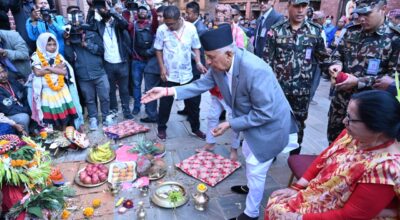 काठमाडौं । कोजाग्रत पूर्णिमाको अवसरमा आज राष्ट्रपति रामचन्द्र पौडेलले भक्तपुरस्थित नवदुर्गा मन्दिरमा नवदुर्गा भवानीको पूजाअर्चना गरी टीका, प्रसाद ग्रहण गर्नुभएको