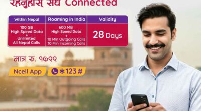 काठमाडौँ । आफ्ना ग्राहकहरुका आवश्यकताहरू पूरा गर्न नवीनतम सेवा, सुविधाहरु प्रदान गर्ने एनसेलले सधैं अन १७९९ रोमिङ प्याक ल्याएको छ