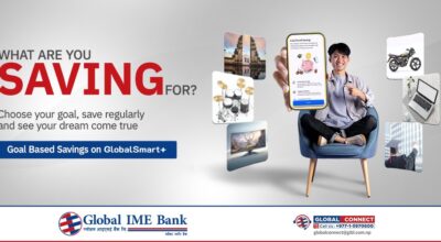 काठमाडौँ । ग्लोबल आइएमई बैंक लिमिटेडले लक्ष्य निर्धारण गरी लक्ष्य अनुसारको रकम बचत गर्न सक्ने ‘गोल बेस्ड सेभिङ्ग’ योजना सार्वजनिक