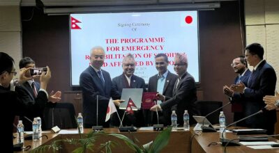 काठमाडौँ । जापान सरकारले बिपी राजमार्ग पुनर्निर्माण र मर्मतका लागि रु दुई अर्ब ६० करोड अनुदान सहयोग प्रदान गरेको छ