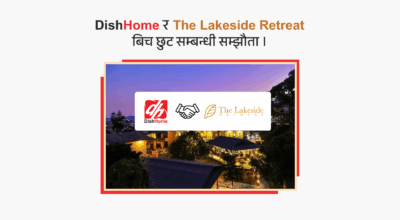 काठमाडौं । डिशहोमले आफ्नो भर्चुअल प्रिभिलेज कार्ड कार्यक्रम अन्तर्गत पोखरास्थित लेक साइड रिट्रिट (आइएमई हस्पिटालिटीद्वारा सञ्चालित) सँग नयाँ साझेदारी गरेको