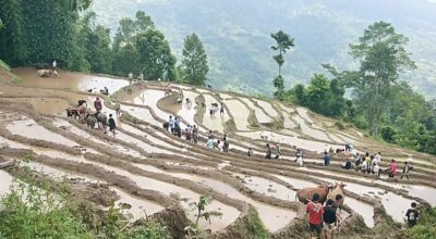 साउन १७ गते । धनकुटाको महालक्ष्मी नगरपालिका–२ का यत्नबहादुर कटुवालको खेतमा धान रोप्दा यो पटक बेग्लै रौनक थियो । बर्खामा धान रोपाइँ