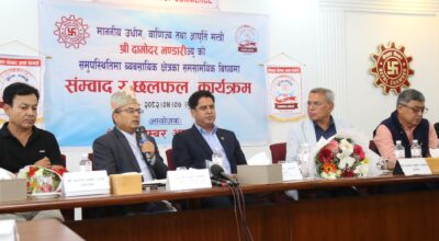 काठमाडौं । नेपाल चेम्बर अफ कमर्सले खुद्रा बिक्री मुल्य एमआरपी कार्यान्व्यनमा देखिएको समस्याबारे उद्योग वाणिज्य तथा आपूर्ति मन्त्री दामोदर भण्डारीको