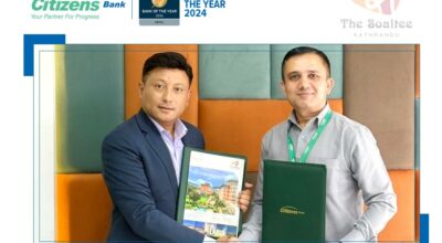 काठमाडौं । सिटिजन्स बैंक इन्टरनेशनल लिमिटेड र काठमाडौं स्थित द सोल्टी होटल एण्ड रिर्सोटबीच विशेष छुटको सम्झौता भएको छ । सिटिजन्स