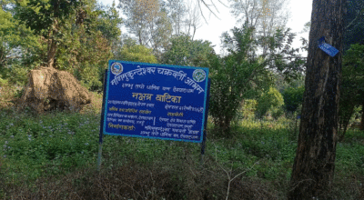 पुस : देवघाट क्षेत्र विकास समितिको स्वामित्वमा रहेको मणिमुकुन्देश्वर चक्रवर्ती आश्रम धार्मिक वनभित्र निर्माण गरिएको नक्षेत्र वाटिका हाल संरक्षण अभावका