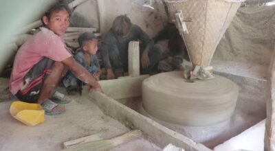 धादिङ- पानीको चापले सानो काठको मदानी फनफनी घुमेपछि पानीको घट्ट चल्छ । ढुङ्गाको झाँतोलाई घुमाएर पिसानीको काम गर्ने पानी घट्ट आजकाल देख्नै