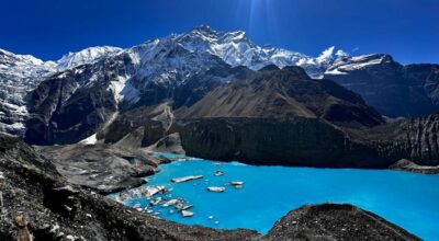 म्याग्दी, ५ कात्तिकः उत्तर, पूर्व र पश्चिम तीनतिर उभिएका हिमाल । हिउँ नहुँदा वरपर सुक्खा र उजाड पहाड । हिमालका