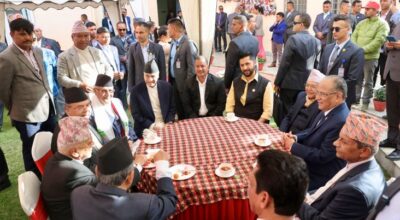 काठमाडौं । नेकपा एमालेद्वारा आयोजित चियापान कार्यक्रममा प्रधानमन्त्री पुष्पकमल दाहाल ‘प्रचण्ड’, नेपाली कांग्रेसका सभापति शेरबहादुर देउवालगायत नेताहरु सहभागी भएका छन्