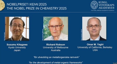 काठमाडौं : सन् २०२५ रसायनशास्त्रतर्फको नोबेल पुरस्कार ३ वैज्ञानिकलाई संयुक्त रूपमा प्रदान गरिएको छ । रोयल स्विडिस एकेडेमी अफ साइन्सेजले