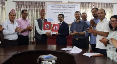काठमाडौं-ग्लोबल आइएमई बैंक लिमिटेड र डिप्रोक्स नेपालबीच डिजिटल कारोबारलाई प्रवर्द्धन गर्न समुन्नति डिजिटल फाइनान्स परियोजना सञ्चालनका लागि समझदारी पत्रमा हस्ताक्षर
