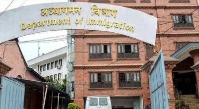 काठमाडौँ : अध्यागमन विभागले वैदेशिक रोजगार विभागबाट जारी सूचना तथा सञ्चारमाध्यममा प्रकाशित समाचारका कारण त्रिभुवन अन्तर्राष्ट्रिय विमानस्थलस्थित अध्यागमन कार्यालयबाट प्रस्थान
