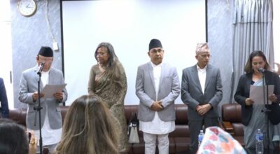 काठमाडौ, ३० भदौ । अन्तरिम सरकारका नवनियुक्त तीनजना मन्त्रीले पद तथा गोपनीयताको शपथ लिएका छन् । राष्ट्रपति रामचन्द्र पौडेलले आज