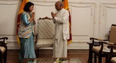 काठमाडौ । परराष्ट्रमन्त्री ड.बिमला राई पौड्यालले श्रीलंकाका प्रधानमन्त्री दिनेश गुणबद्र्धनेसँग शिष्टाचार भेट गर्नुभएको छ । श्रीलंकाको ७५ औं स्वतन्त्रता दिवसका