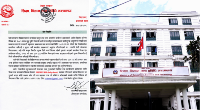 काठमाडौं । शिक्षा, विज्ञान तथा प्रविधि मन्त्रालयले गैरकानुनी रुपमा संकलन गरिएको शुल्क विद्यार्थीलर्य फिर्ता गर्न निर्देशन दिएको छ । मन्त्रालयले
