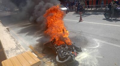 काठमाडौं : बजाज पल्सर मोटरसाइकल गुडिरहेको अवस्थामा अचानक आगलागी भएर खरानी बनेको छ । काठमाडौँको त्रिपुरेश्वरस्थित सडकमा बा ९० प ८१८१