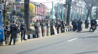 काठमाडौं । जेनजी अगुवा मिराज ढुंगाना समूहले सोमबारबाट सुरु गर्न लागेको विरोध प्रदर्शनलाई ध्यानमा राखेर काठमाडौंको माइतीघर क्षेत्रमा सुरक्षाकर्मीहरु तैनाथ