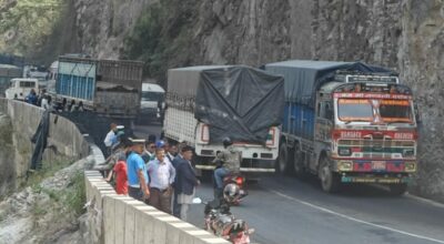 चितवन, २८ वैशाख । नारायणगढ–मुग्लिन सडकखण्ड अवरुद्ध भएको छ । आज बिहान नारायणगढबाट मुग्लिनतर्फ जाँदै गरेको मधेश प्रदेश–०३–००१ ख ९८१७