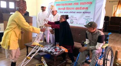 काठमाडौं । मुक्तिनाथ विकास बैंकले संस्थागत सामाजिक उत्तरदायित्व अन्तर्गत कञ्चरपुरमा अपाङ्गता संरक्षण नेपाल संस्थासँगको साझेदारीमा शरीरिक अपाङ्गता भएका व्यक्तिहरुलाई आवश्यक