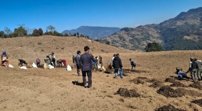 खोटाङ । यहाँको दिप्रुङ चुइचुम्मा गाउँपालिका–६ छितापोखरीका ३३ घर किसानले बाँझो जग्गा बिराएर सामूहिक आलुखेती सुरु गरेका छन् । स्थानीय