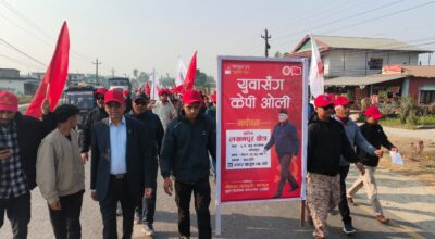 दमक । आसन्न प्रतिनिधि सभा निर्वाचनको प्रचार प्रसारलाई लक्षित गरि नेकपा एमालेले आज झापाको कमल गाउँपालिकामा युवाहरुको मार्च पास प्रदर्शन