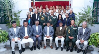 काठमाडौँ, २७ फागुन : प्रधानमन्त्री केपी शर्मा ओलीले राष्ट्रिय सुरक्षाका क्षेत्रमा देखिएका नयाँनयाँ आयामहरूलाई मनन गर्दै देखा पर्न सक्ने चुनौतीको