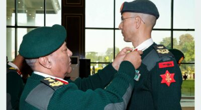 काठमाडौँ : मन्त्रिपरिषद्को यही मङ्सिर ५ गतेको निर्णयअनुसार उपरथीमा विशेष बढुवा पाएका सहायक रथी कृष्णप्रसाद भण्डारीलाई प्रधान सेनापति अशोकराज सिग्देलले