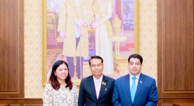 बैकक। मित्र राष्ट्र थाईल्यान्डको ३ दिने मैत्रीपूर्ण भ्रमणमा रहनुभएका संघिय सांसद एकनाथ ढकालद्वारा थाईल्यान्डका रक्षा मन्त्रि सुतिन क्लूंगसाङ्ग संग शिष्टाचार