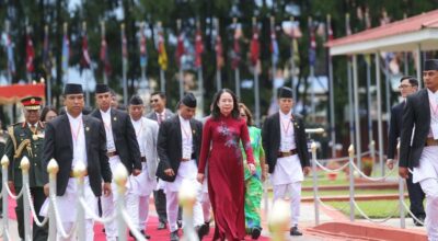 काठमाडौँ । समाजवादी गणतन्त्र भियतनामका उपराष्ट्रपति भो थि आन सुआन नेपालको तीनदिने औपचारिक भ्रमणका काठमाडौँ आइपुगेकी छिन् । उपराष्ट्रपति रामसहायप्रसाद