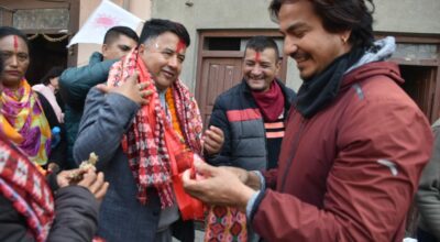 भक्तपुर । आगामी प्रतिनिधिसभा निर्वाचनमा एमालेबाट भक्तपुर क्षेत्र नं. २ का उम्मेदवार महेश बस्नेतको घरदैलो अभियानमा स्थानीय बासिन्दाद्वारा भव्य स्वागत